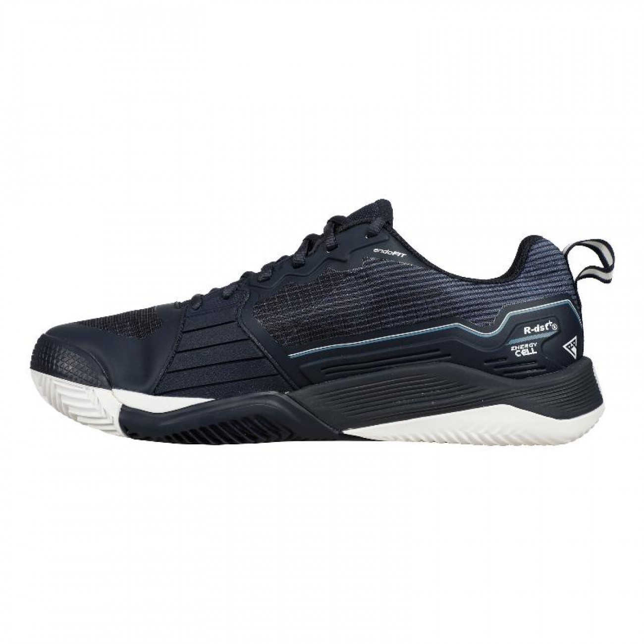 El caucho superpuesto en la zona del medial proporciona durabilidad y protección adicionales al arrastrar el pie.